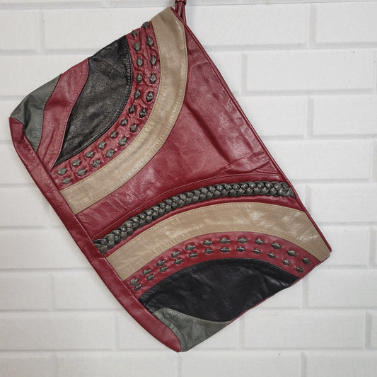 1970s boho bag clutch with strap oxblood red leather woven detail Mister Ernest