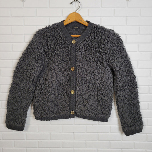 Massimo Dutti size M wool alpaca boucle cardigan sweater charcoal gray minimalist
