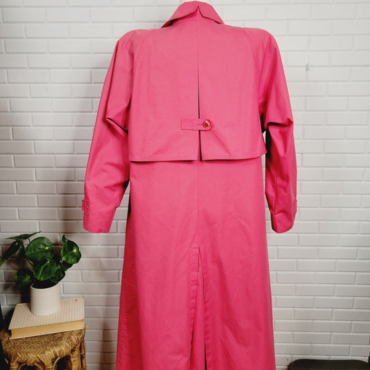 1970s bright pink London Fog long trench coat size 10 cottagecore