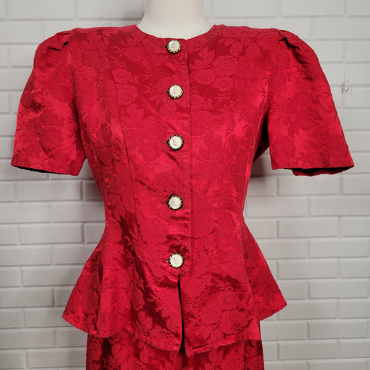 80s vintage peplum skirt set lipstick red rose damask Ultra Dress size 10